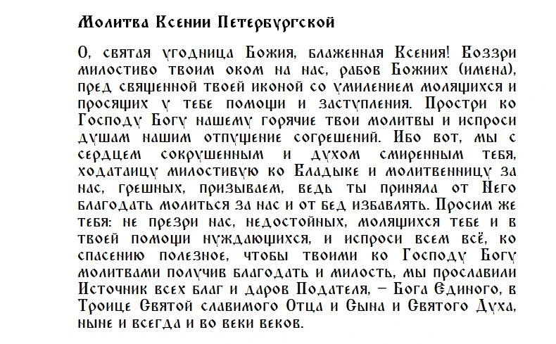 Молитва святой Ксении Петербургской